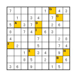 日「火原先輩」 火「あ、日野ちゃん。こんにちわ」 日「こんにちわ。どうしたんですか? 頭抱えて」 火「それがさー。これ見てくれる?」 ![]() 日「これ、何ですか?」 火「数字のパズルだって。金やんが解いてみろって。正解したらメシおごってくれるっていうから、頑張ってるんだけど、何がなんだかさっぱりで………」 【問題】 太枠で区切られた9つのマスと縦列、横列及びA〜Iにはそれぞれ1〜9までの数字が一つずつ入ります。数字が重複しないようにマスを全て埋めて、A〜Iのマスの数字の合計を答えなさい。 |